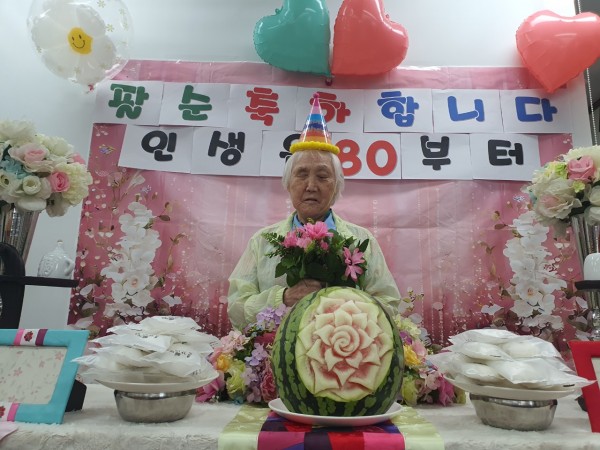 822일 주간보호센터에서 장차연 회원님의 팔순잔치가 열렸습니다. 회원님께서는 도토리묵, 식혜, 통닭, , 수박 등 풍성한 음식을 직접 준비해 오셨고, 센터에서도 찰밥·잡채·소고기미역국으로 따뜻한 생일상을 마련했습니다.